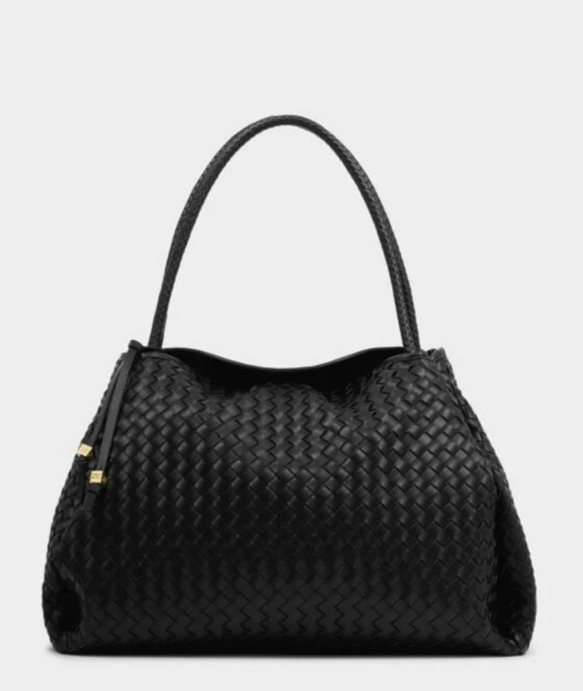 Black Nova Hand Woven Large Shoulder Bag in Black showcases soft-to-touch woven vegan leather, adding texture and dimension to any look. Considered details include an easy magnetic closure, an internal zip pocket for valuables, and a signature branded bag charm. Designed to suit both work and play, it's the must-have profile of the season.